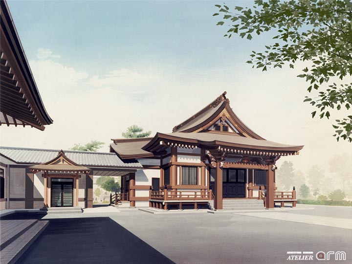 寺社建築を描くのはたいへん難しいといいますか、いろいろと勉強が必要ですね 着彩:グァッシュ